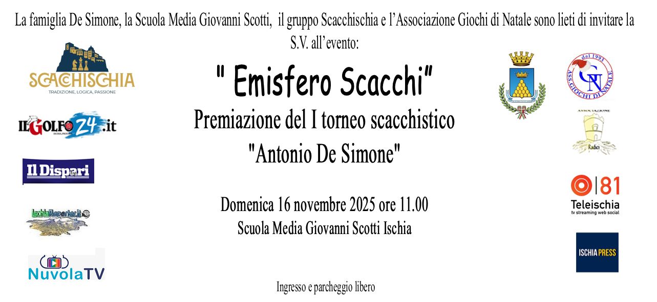 Si informa la Gentile Clientela che, a seguito della Ordinanza n°216/2025 del Comandante della Polizia Locale del Comune di Ischia, emessa per la effettuazione della Manifestazione “ACCENSIONE ALBERO E LUCI A PIAZZA DEGLI EROI”, SABATO 29 NOVEMBRE 2025
