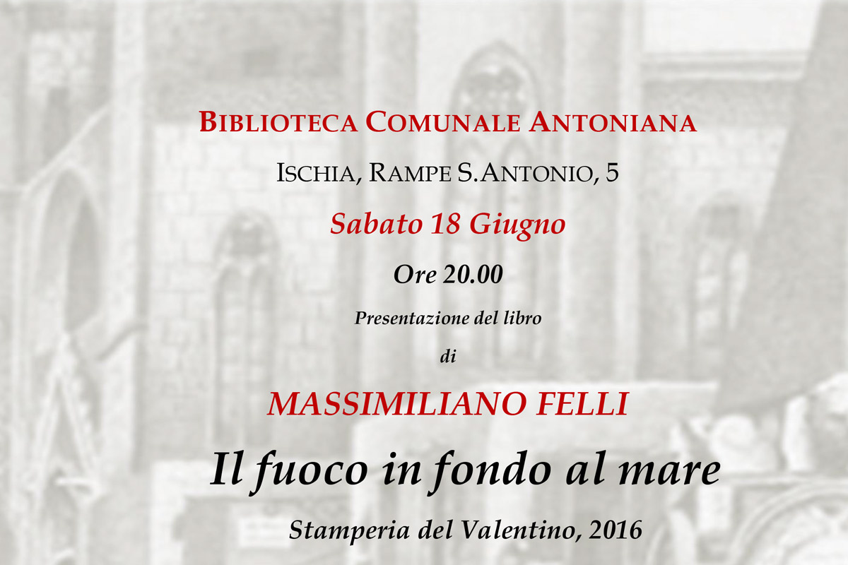 Il giallo storico della collana noir GialloValentino dell’editore partenopeo Stamperia del Valentino, ispirato a fatti realmente accaduti, documentati in una scheda in calce al volume, reca un titolo emblematico non soltanto perché riecheggia il mistero del naufragio dell’Ercole con i preziosi documenti contabili dell’amministrazione garibaldina in Sicilia. In realtà rimanda tanto alla ribollente natura vulcanica della nostra isola, quanto a quel fuoco della narrazione che quasi divora il lettore e che si cela nella sicura ricostruzione e nella sapiente interpretazione e trasformazione delle fonti; come in un mare, volendo citare Massimiliano Felli, «con i suoi colori, col suo rumore, con l’immensità reale e metaforica della sua massa stessa, delle sue inattingibili profondità». Sabato sera a partire dalla 20.00 presso la Biblioteca Antoniana, con Massimiliano Felli, Nino D’Ambra e Lucia Annicelli proveremo ad immergerci nell’indagine tutta ischitana del Commissario Aniello Cafasso. Vi aspettiamo.