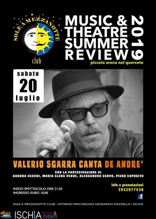 Il Sole a mezzanotte club è lieto di annunciare il calendario della terza stagione della rassegna Music and Theatre Summer Review, una rassegna musicale e teatrale che partirà da sabato 20 luglio, protraendosi fino al 24 agosto. Cinque appuntamenti degni di nota e soprattutto degni d’esser vissuti al fresco del querceto, presso Il Sole a mezzanotte club di Ischia.