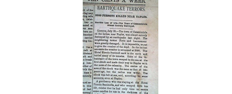 Scopriamo che il terremoto di Casamicciola è un evento del tutto attuale, in questi giorni si parla delle stesse cose, del modello di ricostruzione o del fatto che i terremoti non si possono prevedere. La storia dei terremoti è un po' sempre uguale, ci fa scoprire nomi di paesi bellissimi che conosciamo solo una volta distrutti. Questo è impressionante.
