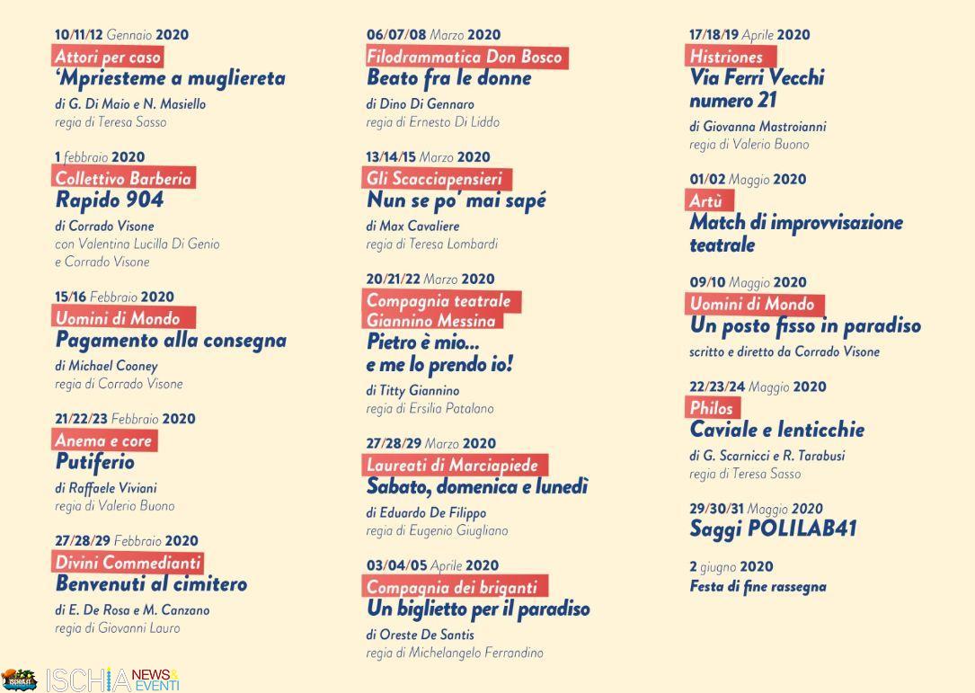 Al Teatro Polifunzionale dal 10 gennaio al 31 maggio 2020 si svolgerà la quinta edizione della Rassegna del Teatro Isolano. Cinque mesi di risate ed emozioni per un cartellone variegato che promette di far ridere, sorridere, riflettere, emozionare gli spettatori.