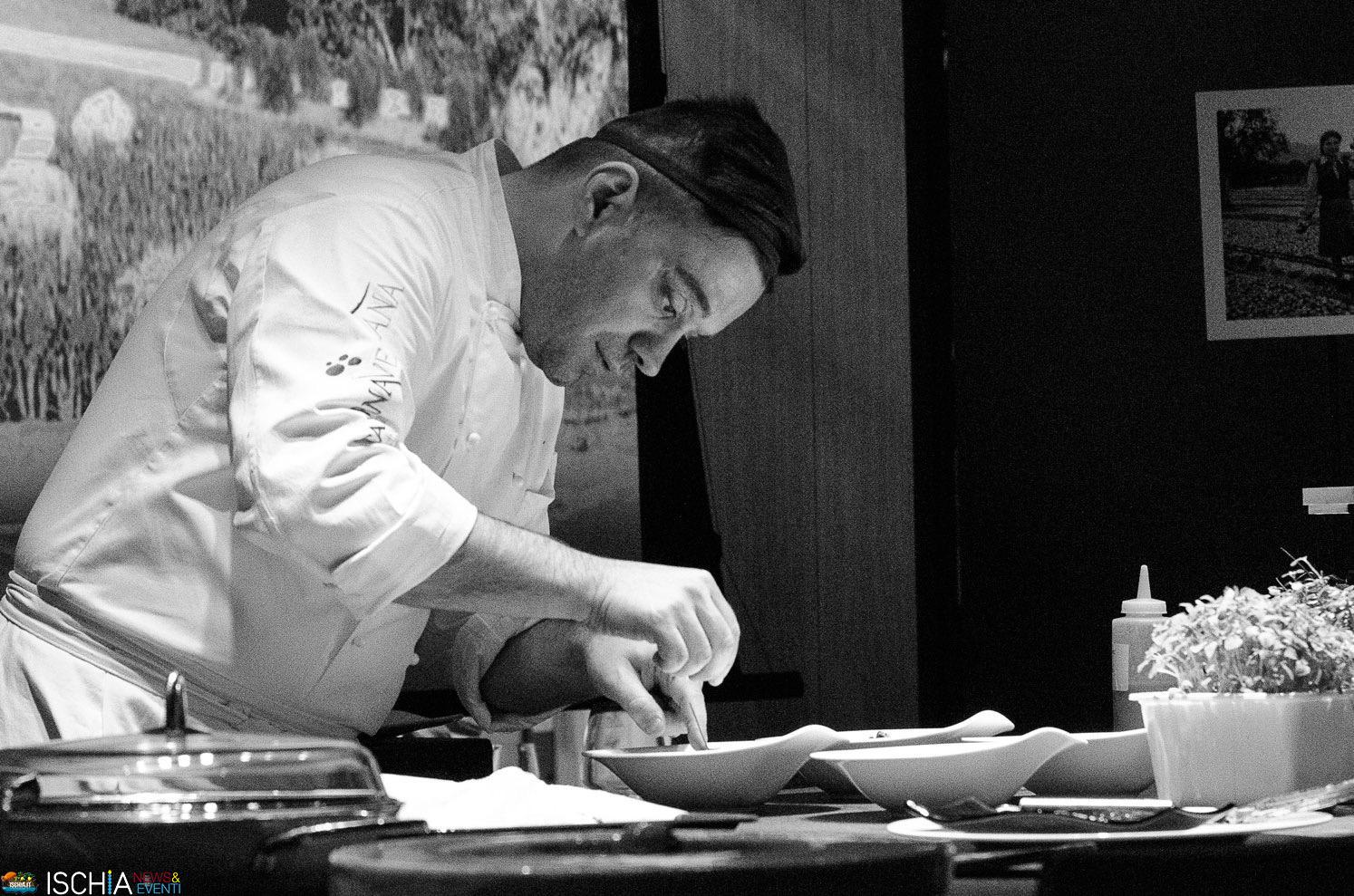Protagonista della prima lezione sarà lo chef Alfonso Crisci. Classe 1977, il suo motto è “saper guardare al futuro senza trascurare il passato”. Ambizioso e pacato, non si lascia abbagliare dalle luci dei riflettori. Possiede un piccolo laboratorio in cui con l’azoto produce distillati e profumi alimentari, in particolar modo quelli alla mandorla e al limone che vengono usati per i suoi dessert. Il suo obiettivo è quello di incuriosire i suoi ospiti, di fargli avere delle aspettative e di stravolgerle alla grande. I suoi piatti sono realizzati con cura, la stessa cura con cui sceglie i suoi ingredienti al mercato, dove trova l’ispirazione per le sue creazioni.
