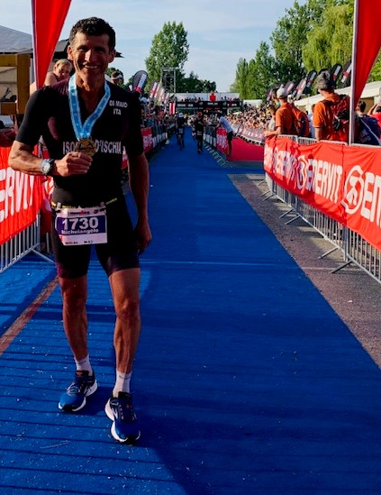 1.800 atleti al via per una gara tra le più dure, 3.800 metri di nuoto, 180 km di bici e 42 km di corsa, per un totale di 220km. Michelangelo Di Maio ha concluso la gara in 11 ore e 32 minuti, riuscendo a cogliere il risultato minimo prefissato di chiudere sotto le 12 ore. La frazione di bici, con due giri da 90 km è risultata molto impegnativa con salite molto ripide e lunghe, ma svolgendosi in Svizzera non poteva essere altrimenti.