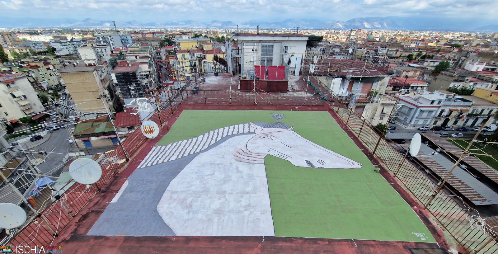 Un’operazione coraggiosa, fatta di inclusione, conoscenza e connessione con il territorio, che si riconosce nelle sue molteplici identità culturali. Creare un’opera d’arte su un tetto, in un quartiere periferico come Miano, è un atto di audacia e generosità.