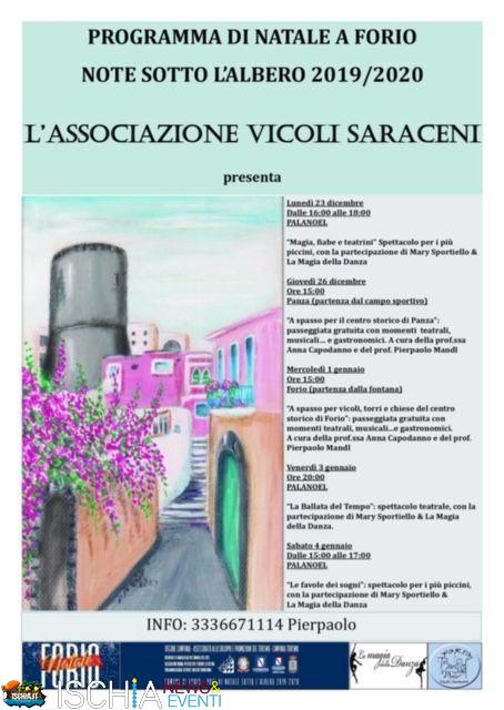 La mattinata di sabato 4 gennaio dalle ore 10.00 alle ore 13.00 spazio alla cultura per il territorio per le strade del centro Storico di Forio con "Dimore storiche - portoni aperti nel centro storico di Forio, visite guidate e degustazioni" a cura dell'IIS Mennella e dalle ore 11.00 alle ore 12.00, sempre per il Centro Storico di Forio, si diffonderà la musica strumentale della Banda Aurora Città di Panza che terminerà la sua esibizione al Palanoel con il Matinée musicale.