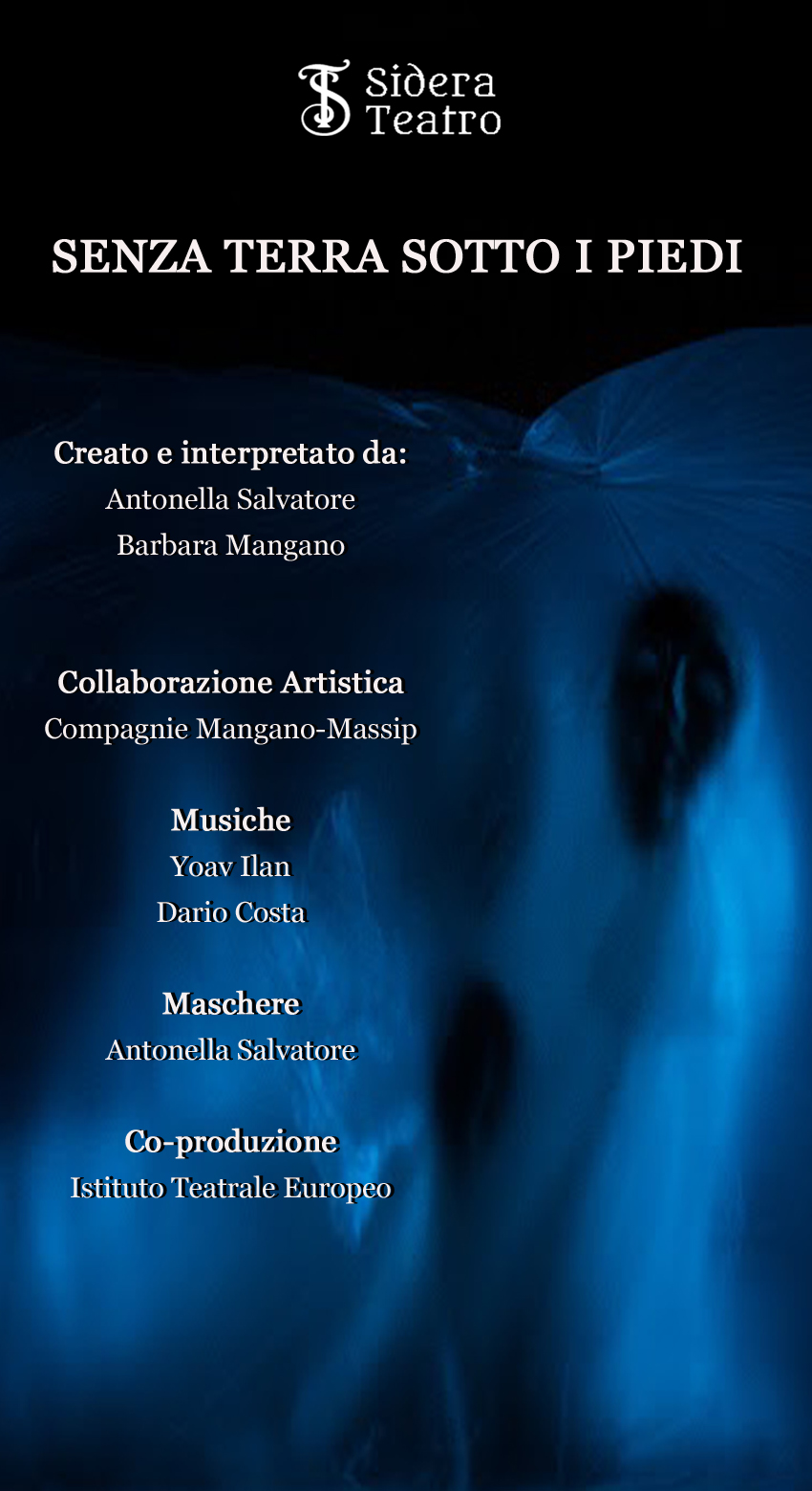 Quattro personaggi le cui storie s’intrecciano, tra presente e passato, tra reale e fantasia: alternando un linguaggio poetico, quello delle donne, ad un linguaggio grottesco quello delle maschere degli scafisti. Di fondo una domanda: Come spogliarsi della propria sofferenza, dell'attaccamento a quel poco che si ha, per incontrare e scoprirsi profondamente uguali? Senza terra sotto i piedi é un progetto nato a Parigi nel 2014 in collaborazione con la compagnia francese Mangano-Massip.