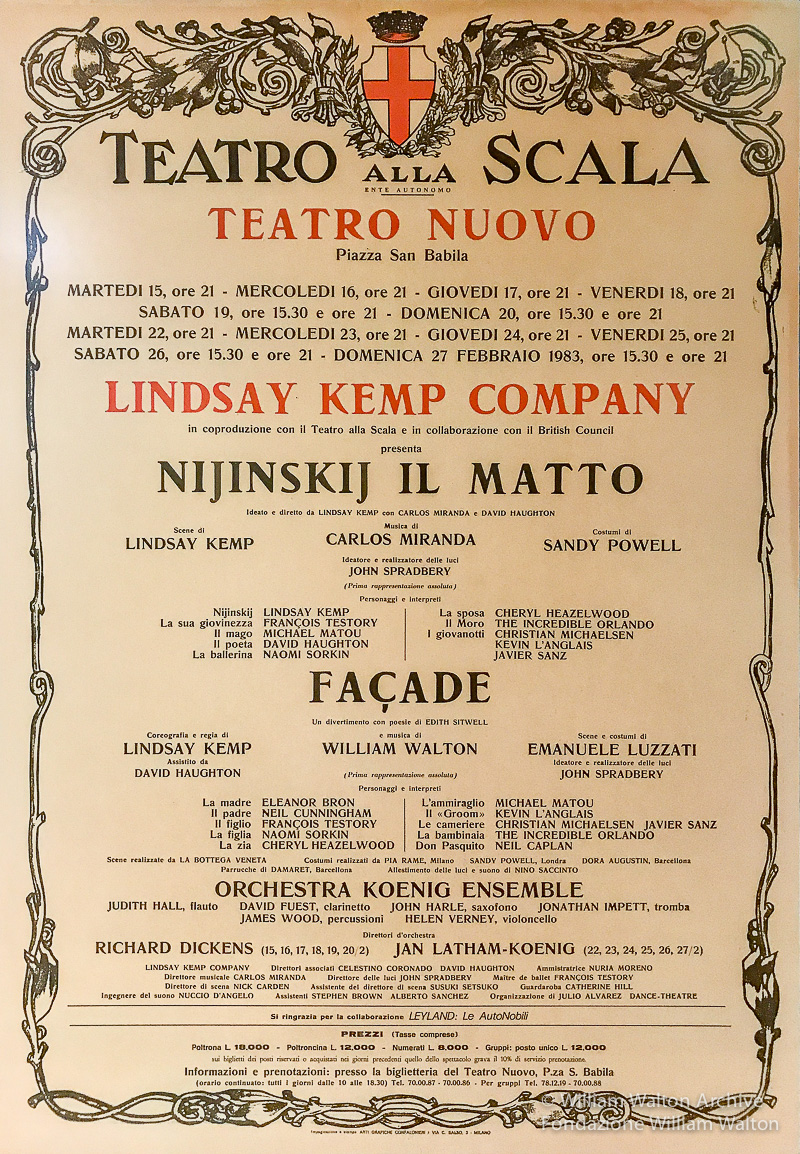 “Nel rendere omaggio a Kemp e per ricordarlo – prosegue Alessandra Vinciguerra - pubblichiamo una fotografia custodita nell’Archivio della Fondazione, che raffigura la compagnia di Lindsay Kemp nei costumi di scena per Façade e la foto del manifesto del balletto, custodita dalla Fondazione e in mostra ad Ischia nella sala museo dei Giardini la Mortella”.