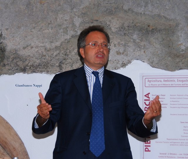 Ha concluso la interessantissima serata l’assessore regionale all’agricoltura Gianfranco Nappi che ha continuato in questo fil rouge fatto di amore e partecipazione per le cose della nostra terra, invitando, quasi supplicando i nostri rappresentanti di categorie e politici, ad accedere ai finanziamenti regionali, che nel campo agricolo sono quanto mai cospicui. E’ la prima volta che ho ascolto un assessore regionale invitare ad aiutare le popolazioni interessate. Ha accolto l’idea di Amendolara, di rivedersi a più presto, invitando però i sindaci, i rappresentati di categoria, tutti gli interessati a formulare una traccia di idea, che possa tramutarsi in un progetto, un programma, un protocollo di intesa che veda le parti fare il loro dovere, e l’ente Regione è ben disposto a finanziare tutto ciò. Nappi porta fretta agli operatori non per le elezioni prossime, ma ha fretta di affrontare la crisi, da cui si esce più forti o nel peggiore dei casi più deboli, e la crisi va affrontata con determinazione e preparazione. Ma sopratatutto, le crisi, in generale,vanno affrontate con unità di intenti vogando tutti nella stessa direzione sicuri nel voler raggiungere l’obiettivo nel migliore dei modi. L’assessore ha inoltre messo in risalto che in questo momento è più il Nord che il Sud a soffrire maggiormente la crisi in atto, e nello stesso tempo non si rende conto come sull’Isola d’Ischia possa esserci in atto un fatto strano: noi con tutti i turisti che ci vengono a fare visita non riusciamo a smaltire il nostro vino. Gianfranco Nappi non riesce a spiegarsi questa evidente contraddizione, quando lui afferma che con il nostro enorme flusso turistico, noi dovremmo aumentare la produzione del nostro nettare! Ed a questo punto lui incomincia a pensare che noi dovrermmo prepararci a fare un altro tipo di turismo, che vada ad interpretare in modo diverso il territorio e le nostre enormi ricchezze, facendo a questo punto diventare il vino come elemento trainante della nostra economia, destagionalizzandola, facendo cioè del vino un prodotto trainante per tutto l’anno. In conclusione Nappi si è augurato il ricorso, o il ritorno all’Agricoltura, all’Ambiente, all’ Enogastronomia, che lui, insieme a noi, vede come il futuro della nostra economia, quando l’industria mondiale è in profonda crisi, vien fuori che le storie locali e le loro tradizioni come nel nostro caso specifico, il vino, possono essere la panacea per tanti mali procurati dalla new economy. In poche parole, noi siamo chiamati sì a chiedere aiuto alle istituzioni, ma siamo soprattutto chiamati a ritrovare noi stessi, la nostra cultura, in cui la nostra storia deve riappropriarsi delle nostre azioni quotidiane, che poi vadano a mettere il vino nella centralità di un nuovo percorso, fatto sulla vecchia via che non bisogna mai abbandonare.