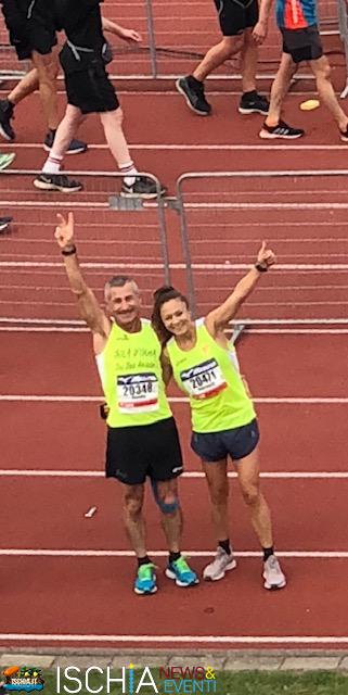 Giovanna ed Aniello sono arrivati insieme al traguardo in 1.27.19 molto vicino al tempo previsto dal loro allenatore e presidente Michelangelo di Maio che era presente nella maratona.